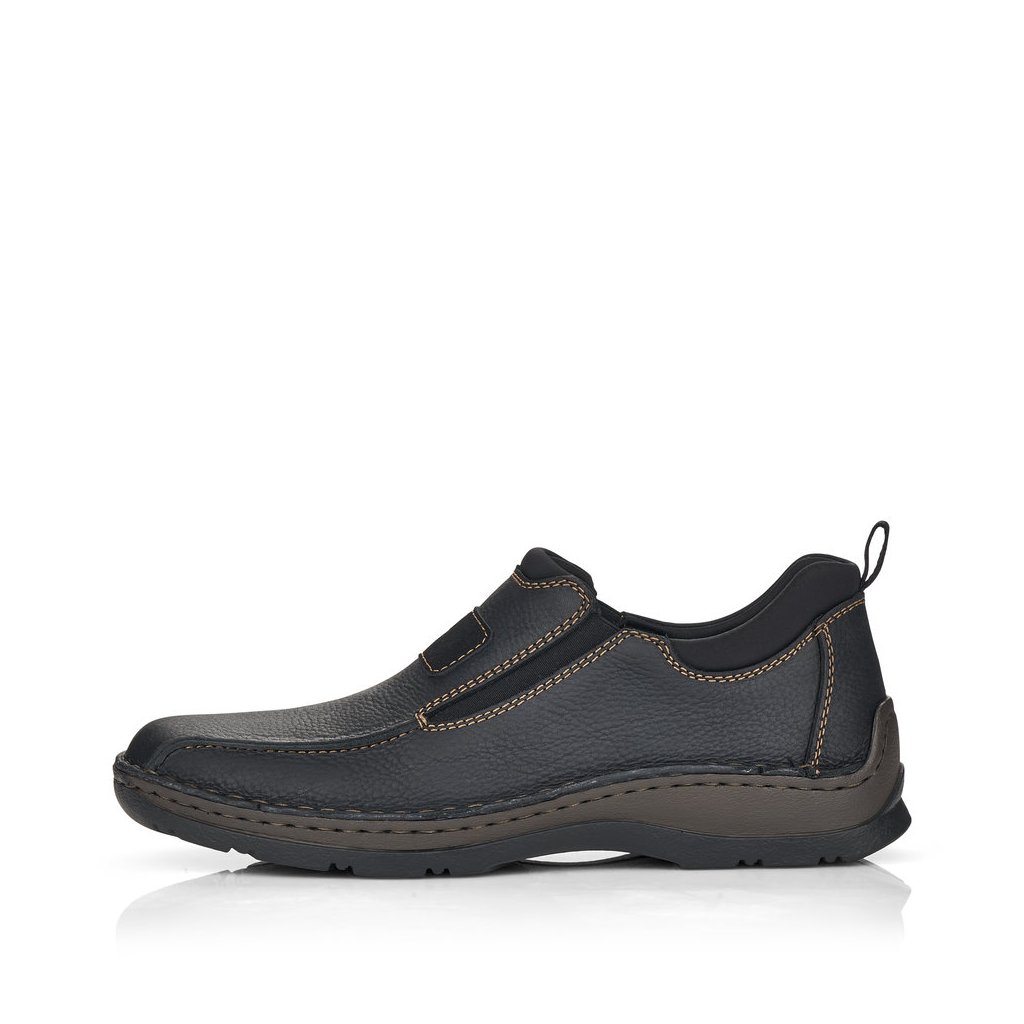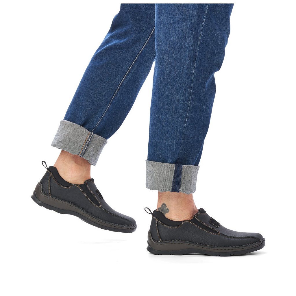 Pánské mokasíny vyrobené z kvalitních materiálů. Obuv má v oblasti nártu dva průstřihy s elastickými vsadkami, díky kterým se lépe obuv nazouvá.