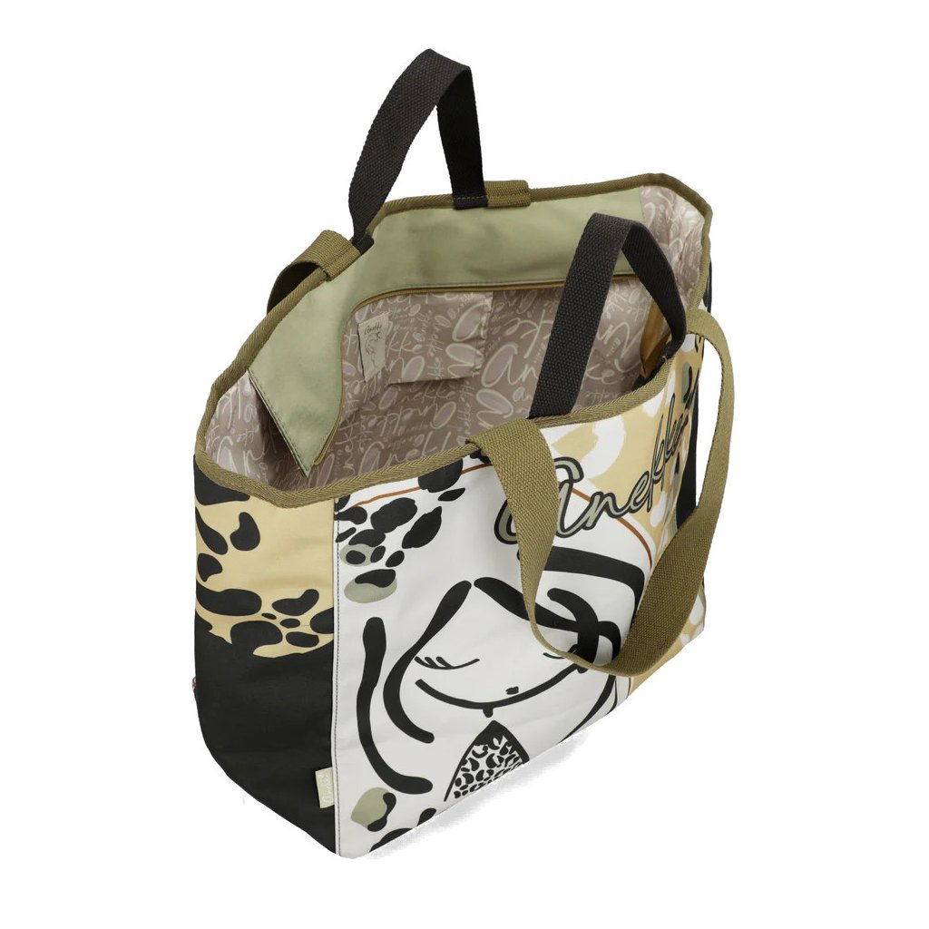 Dámská plážová taška Anekke má dvě ucha do ruky (výška 14cm) a dvě ucha přes rameno ( výška 30cm). Taška se uzavírá na zip. Uvnitř malá otevřená kapsička.