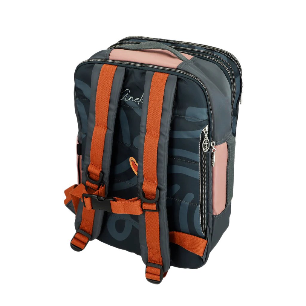 Dámský batoh Anekke má dvě ucha do ruky a dva nastavitelné popruhy přes ramena. Na přední straně batohu je kapsa na zip. Batoh se uzavírá na zip. Uvnitř batohu kapsa na zip a dvě otevřené kapsy.