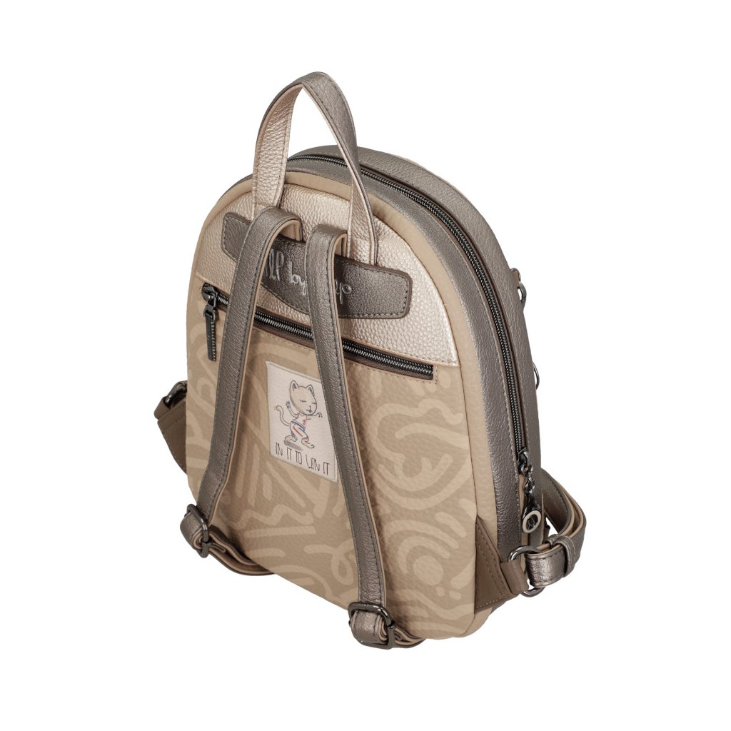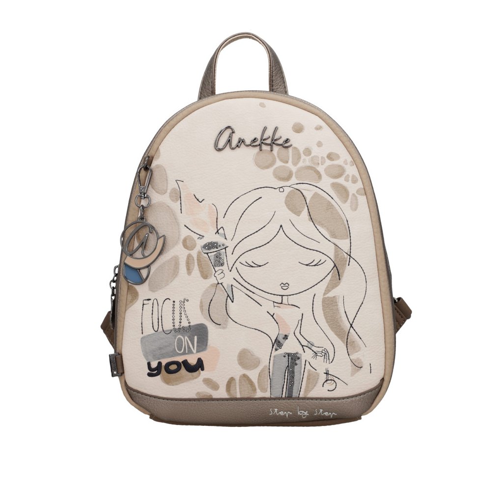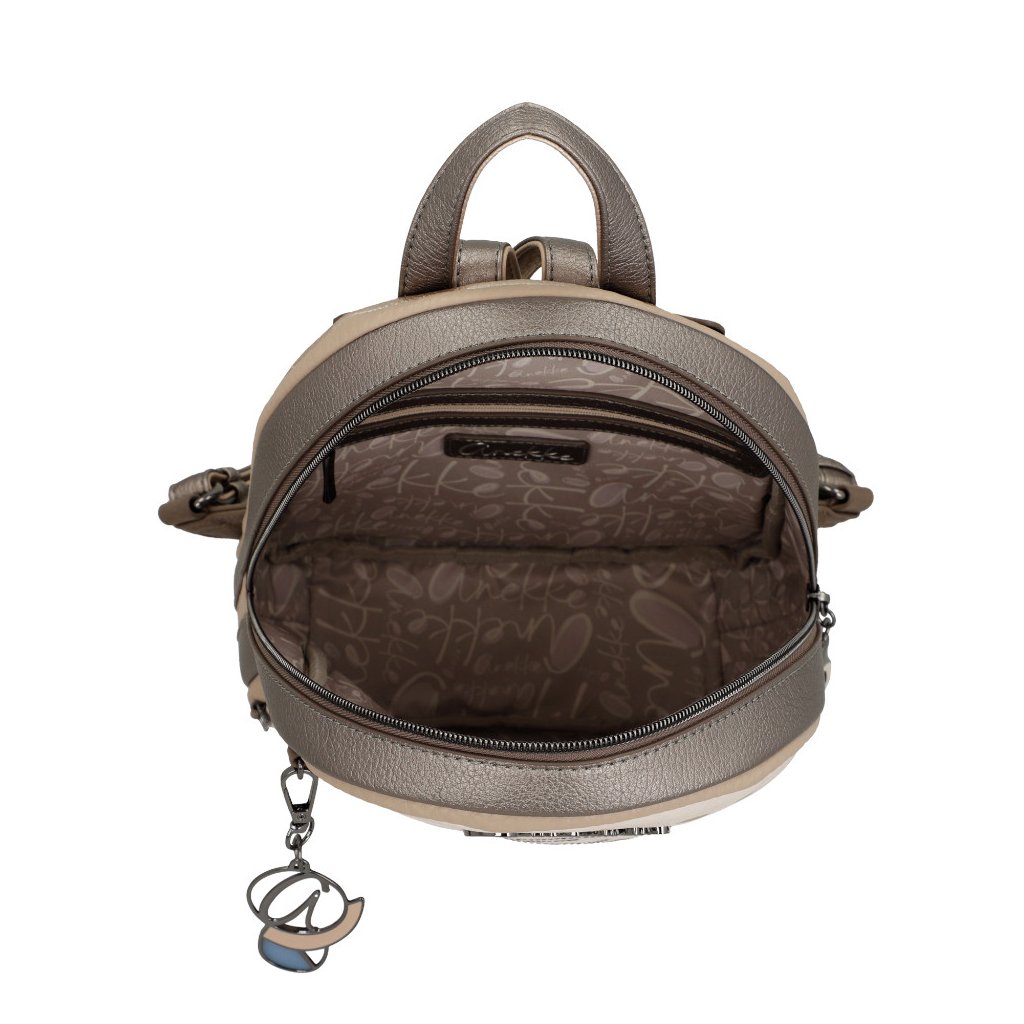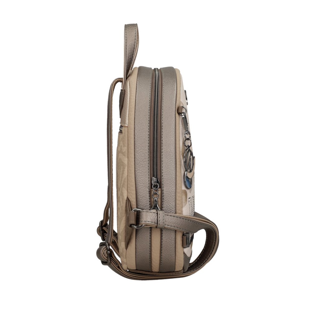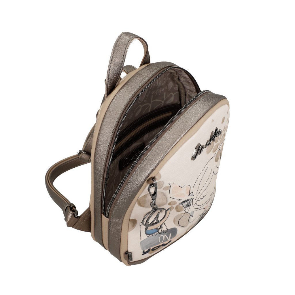Dámský batoh Anekke má jedno ucho do ruky a dva nastavitelné popruhy přes rameno. Na zadní straně kapsa na zip. Uvnitř batohu kapsa na zip a kapsa otevřená.