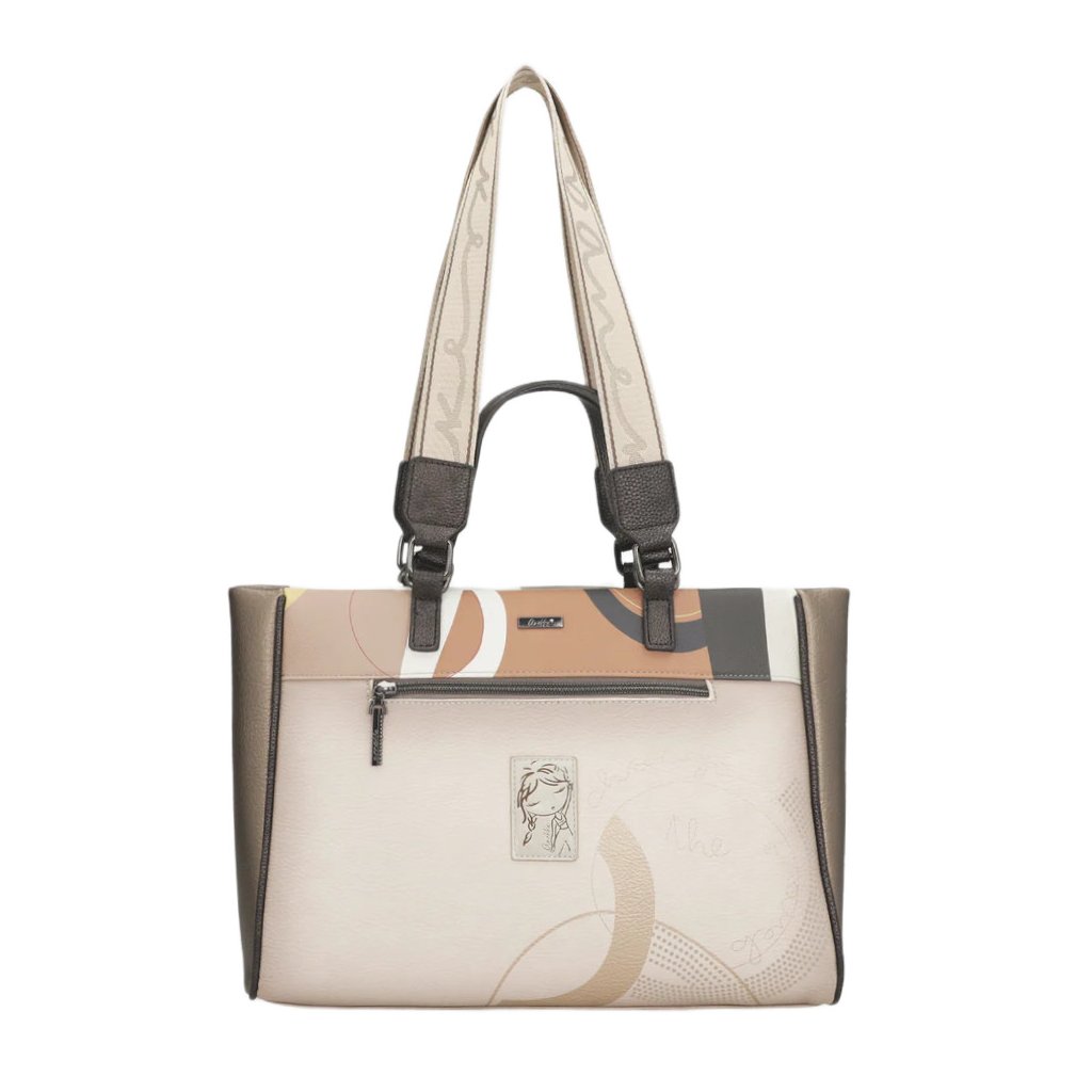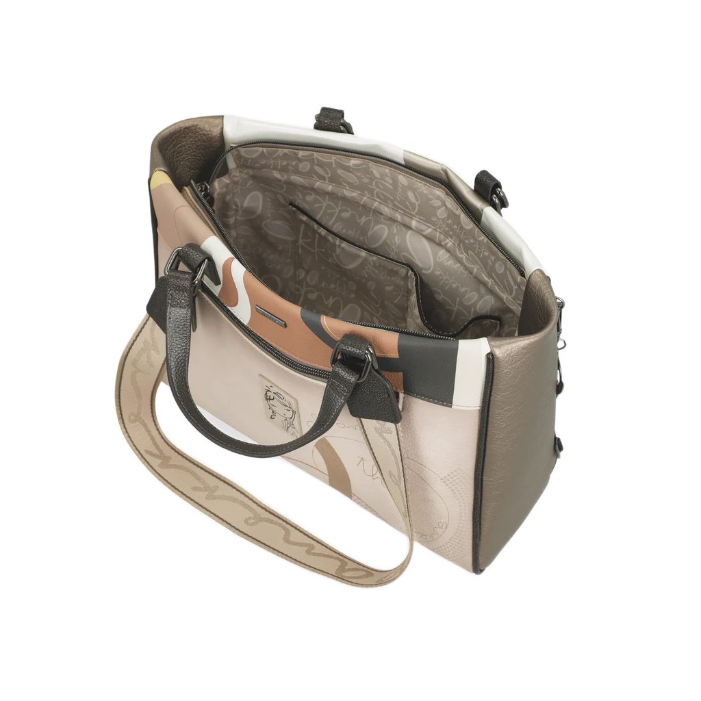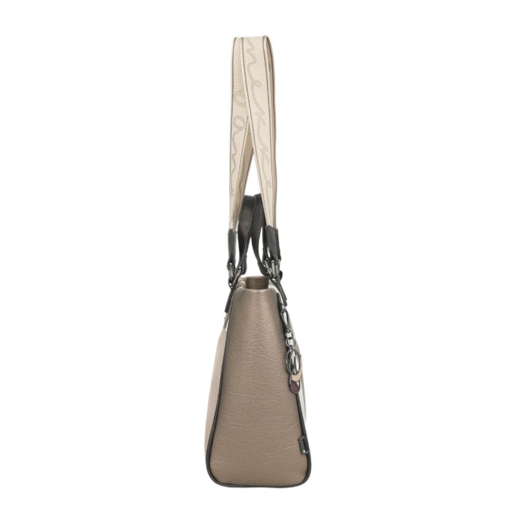 Dámská kabelka se dvěma uchy do ruky a dvěma popruhy přes rameno. Na zadní straně kabelky je kapsa na zip. Uvnitř kabelky jedna kapsa na zip a dvě otevřené. Kabelka se uzavírá na zip.
