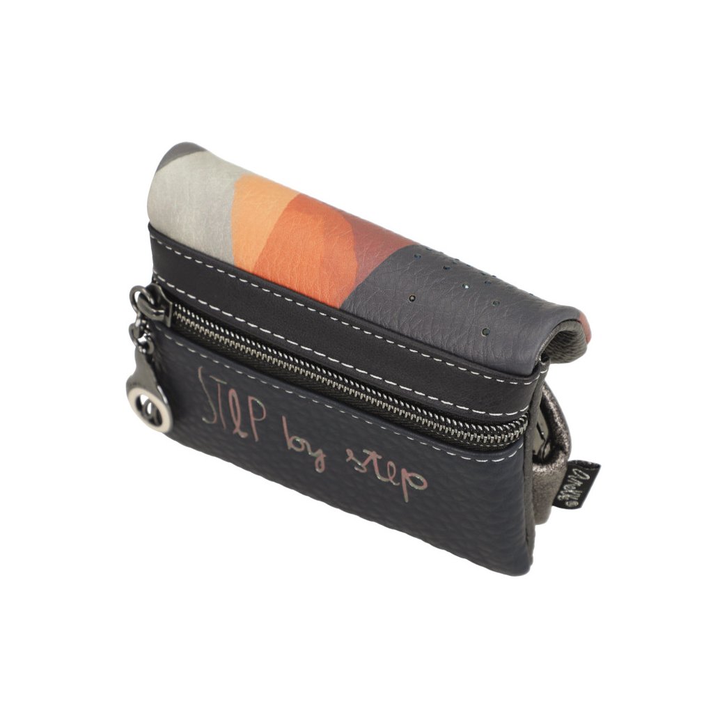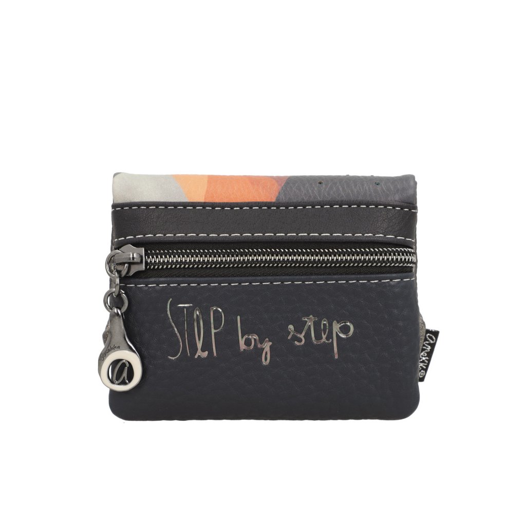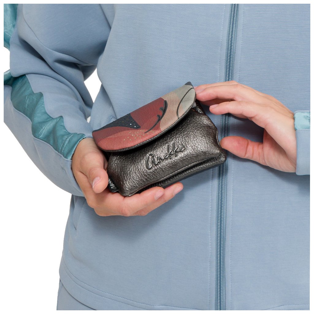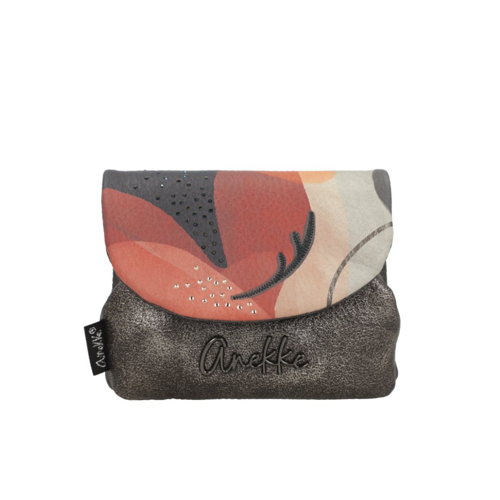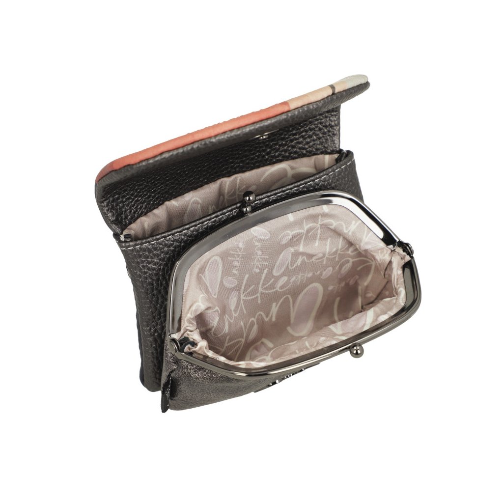 Dámská peněženka Anekke s kapsou se zipem na zadní straně. Klopa se zapínáním na magnet skrývá jednu kapsu otevřenou a jednu kapsu, která se uzavírá kovovým rámečkem s kuličkovým zapínáním.