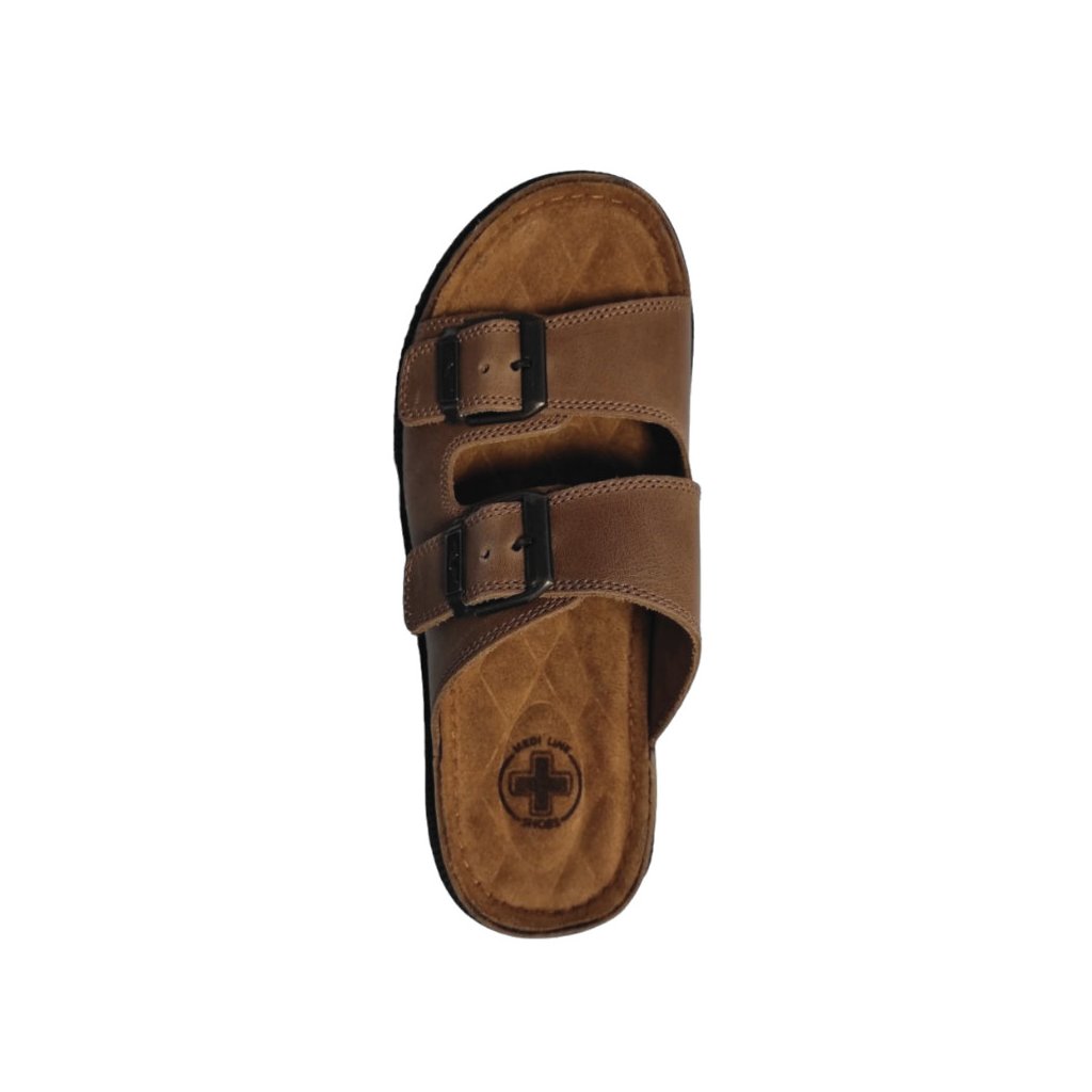 Pánské zdravotní pantofle vyrobené z kvalitní kůže. Vnitřek obuvi tvoří stélky stimulující reflexní body na chodidlech. Dva regulovatelné pásky v nártové části zajistí, že si obuv přizpůsobíte přesně podle vašich potřeb.