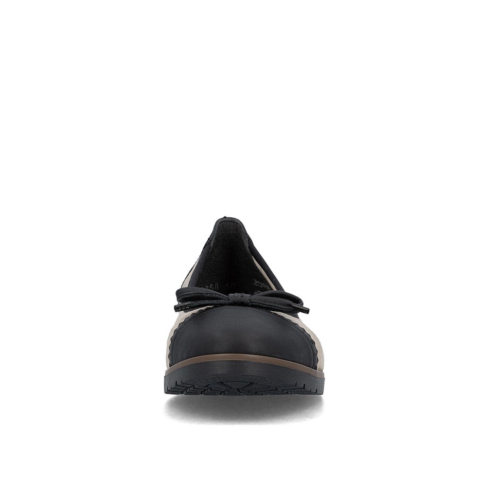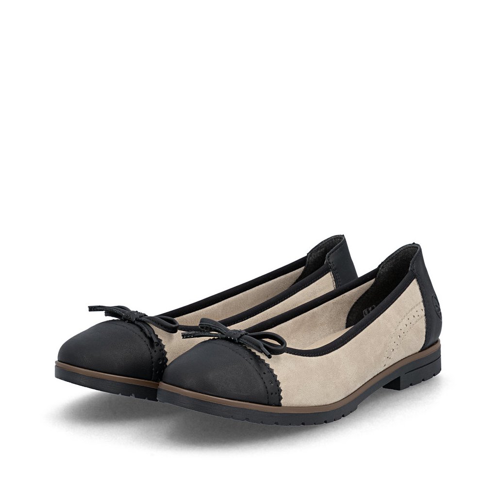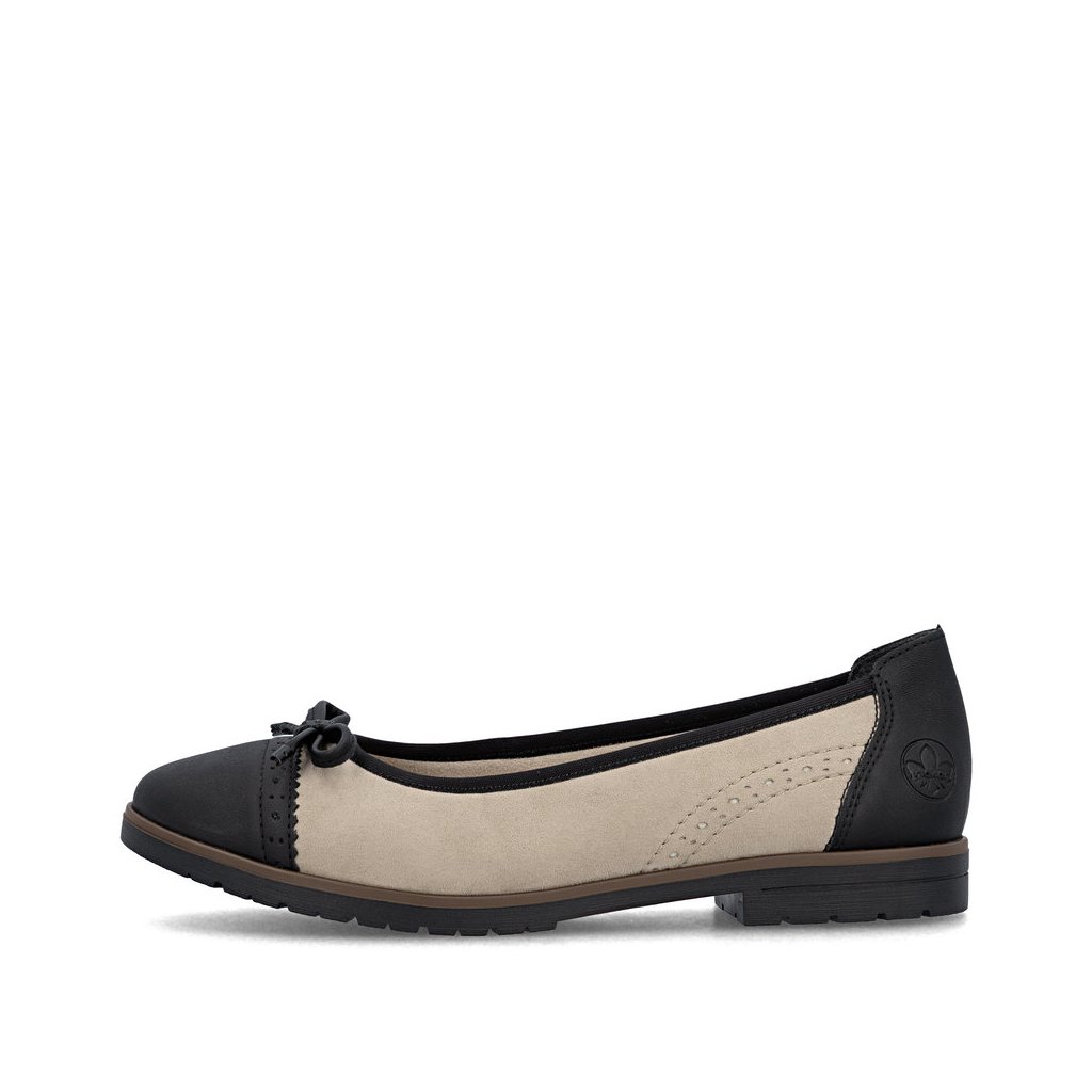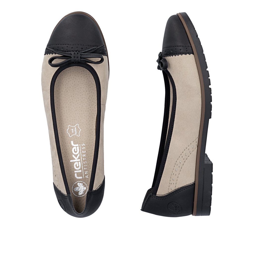 Dámské baleríny Rieker v béžovo-černém provedení s jemnou mašlí a decentním designem, Díky měkké stélce nabízejí pohodlí pro celodenní nošení