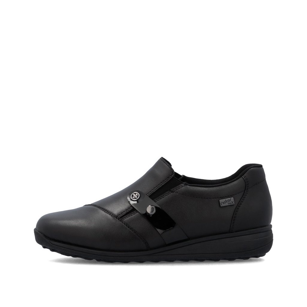 Dámské mokasíny Rieker s TEXovou membránou. Uvnitř obuvi měkká stélka s paměťovou pěnou.