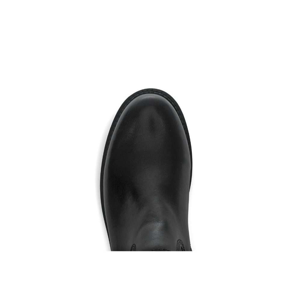 Dámské kozačky vyrobené z hladké kůže. V horní části kozaček všitá pružná vsadka.  Vnitřek je tvořen micro podšívkou. Obuv má XL šíři lýtka, vhodná pro ženy s širšími lýtky.