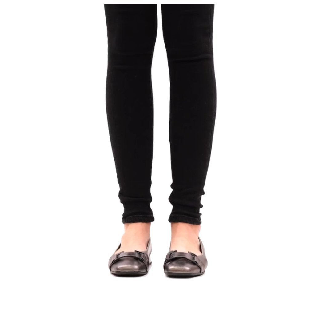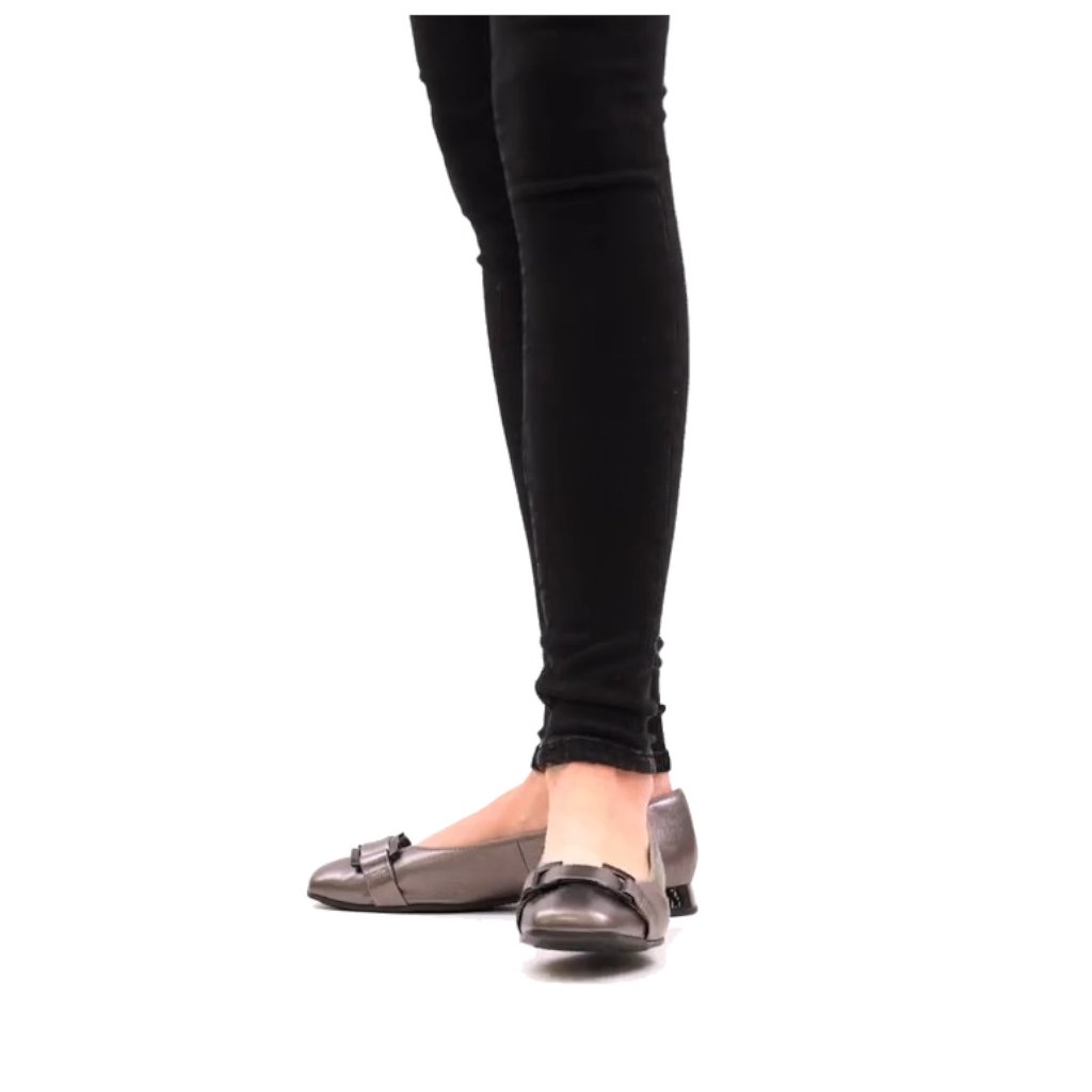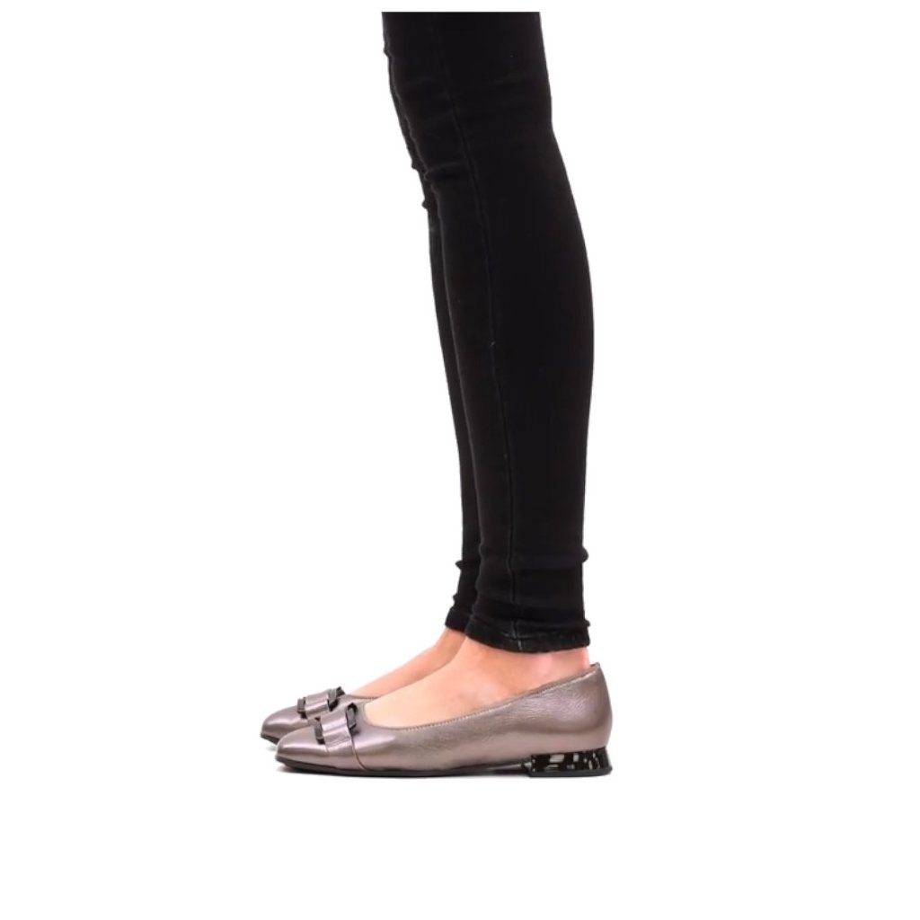 Dámské baleríny, vyrobené z kvalitní kůže, na nártu ozdobný pásek se sponou. Vnitřek obuvi tvoří syntetická podšívka a komfortní kožená stélka.