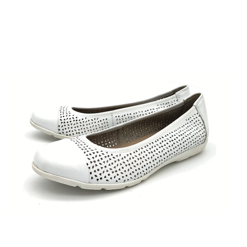 Dámské perforované baleríny, vyrobené z měkké kůže. Vnitřek obuvi tvoří prodyšná kožená stélka.
