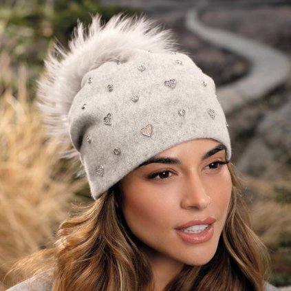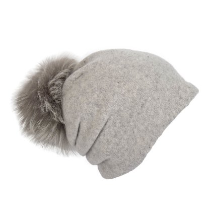 Dámská čepice Katesava s přírodní kožešinovou bambulí a květy s umělými kamínky. Čepice má označení Woolmark quality. Certifikát Woolmark, jejž společnost uděluje výrobcům na...