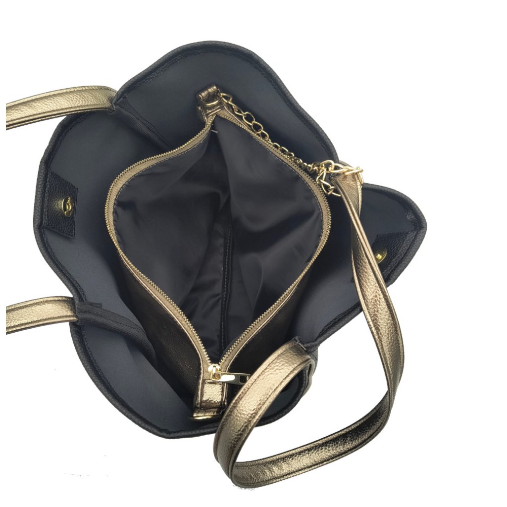 Dámská kabelka Grosso má dvě ucha do ruky, nebo přes rameno (výška 26 cm). Kabelka se uzavírá na patent. Uvnitř kabelky organizér s nastavitelným popruhem o rozměru v 24 d 35 cm.