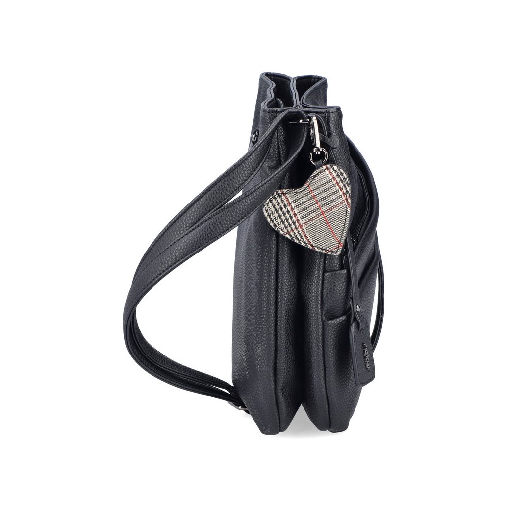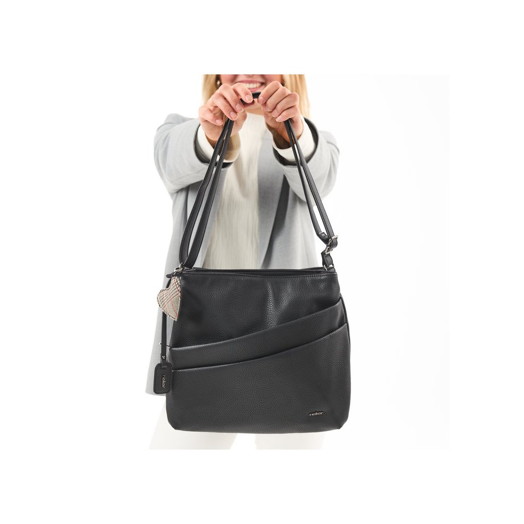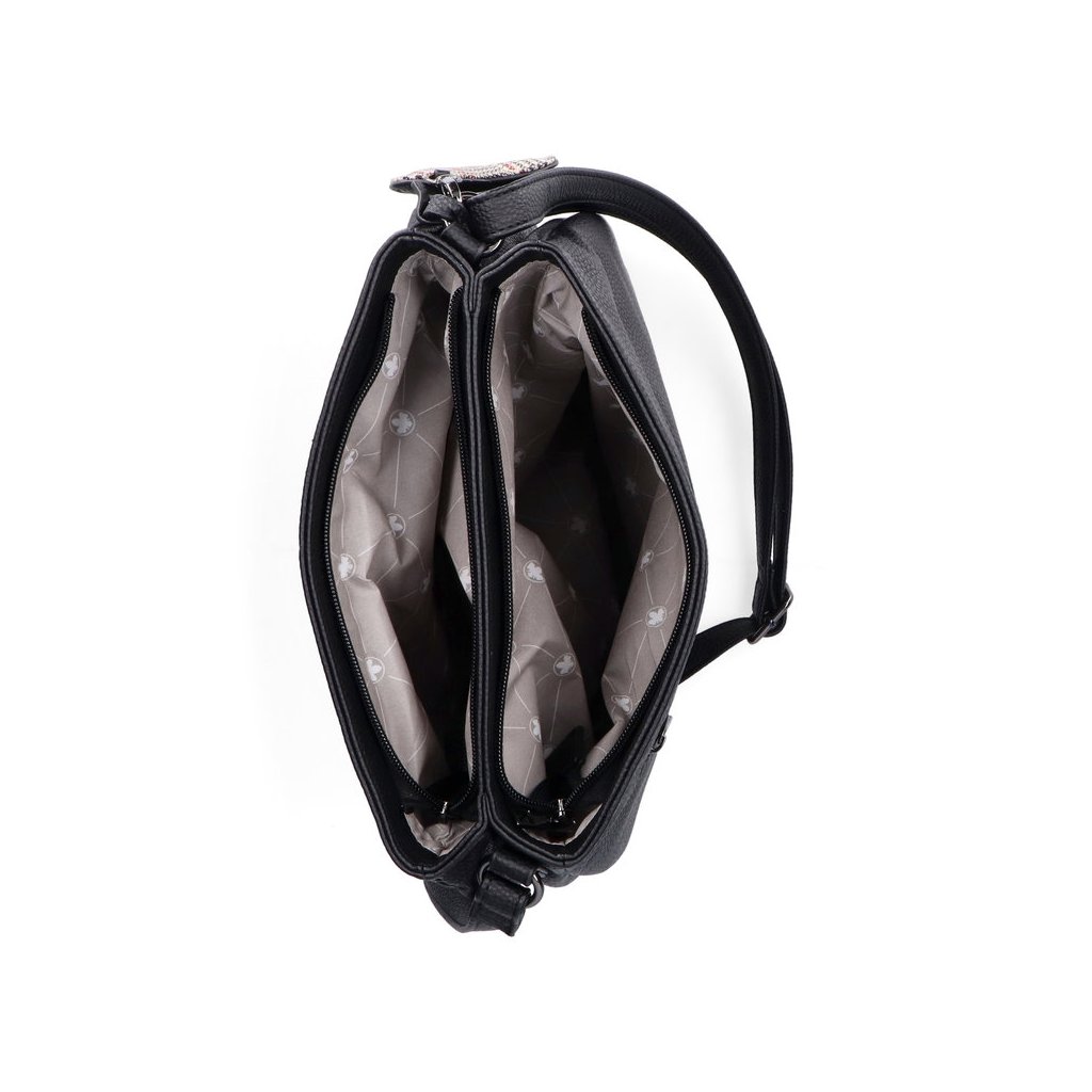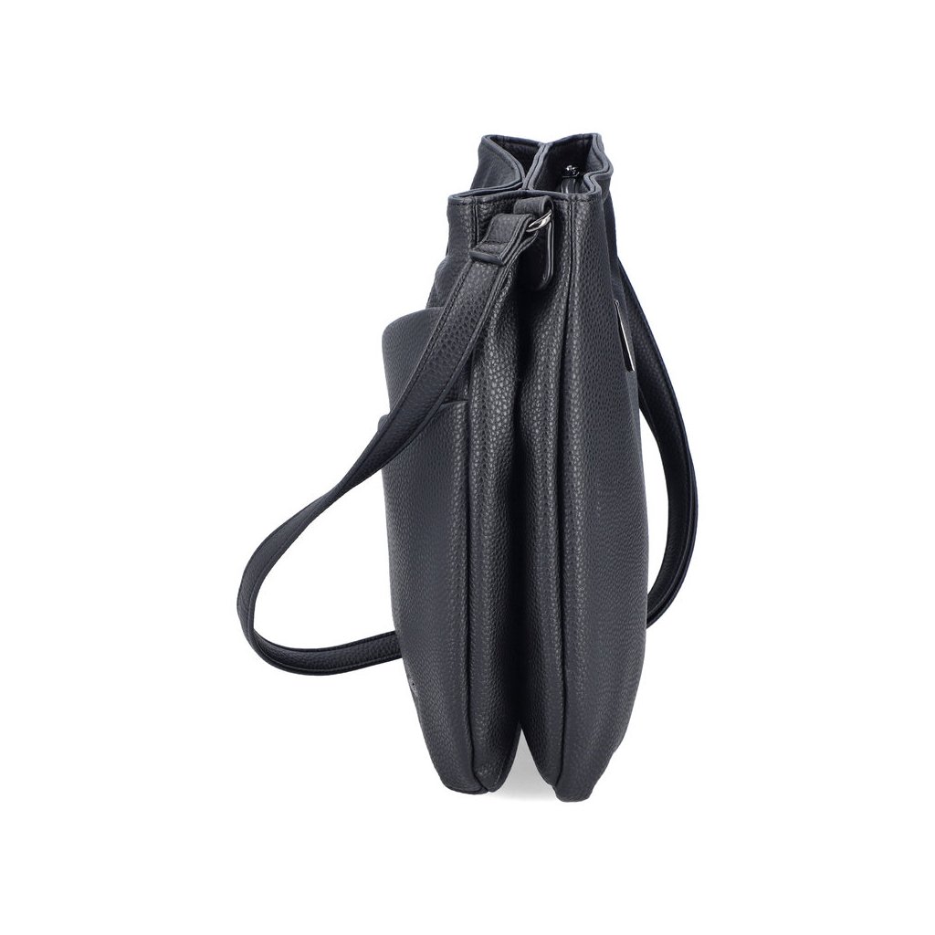 Dámská kabelka s nastavitelným popruhem ( délka120 cm) přes rameno, nebo šikmo přes rameno jako crossbody. Na zadní straně kapsa na zip. Na přední straně jedna kapsa na zip a jedna kapsa na magnet. Kabelka je rozdělena na dvě komory s uzavíráním na zip. Uvnitř kabelky není kapsa.