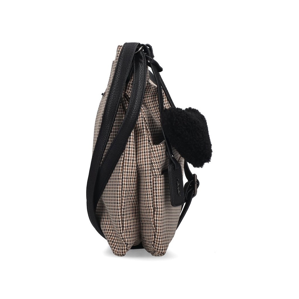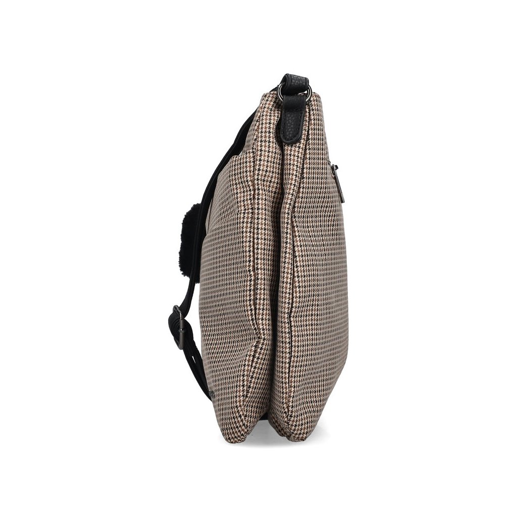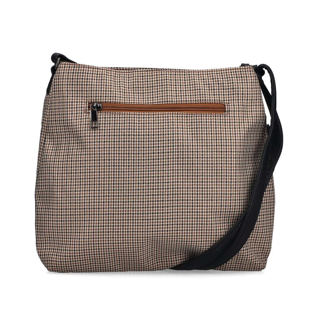 Dámská kabelka s nastavitelným popruhem ( délka120 cm) přes rameno, nebo šikmo přes rameno jako crossbody. Na zadní straně kapsa na zip. Na přední straně jedna kapsa na zip a jedna kapsa na magnet. Kabelka je rozdělena na dvě komory s uzavíráním na zip. Uvnitř kabelky není kapsa.