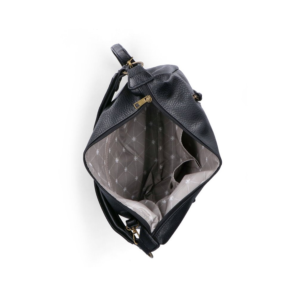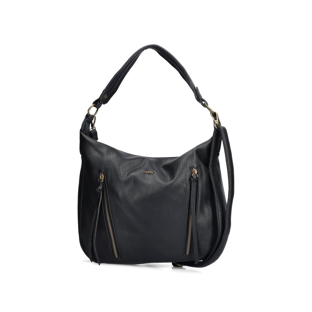 Dámská kabelka s jedním uchem do ruky, nebo na rameno. Kabelka má nastavitelný odnímatelný popruh přes rameno. Uzavíraní kabelky je na zip. V předu kabelky jsou dvě svislé kapsy na zip a na zadní straně jedna kapsa na zip. Uvnitř kabelky kabelky jedna kapsa na zip a dvě otevřené kapsy.