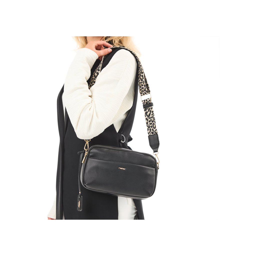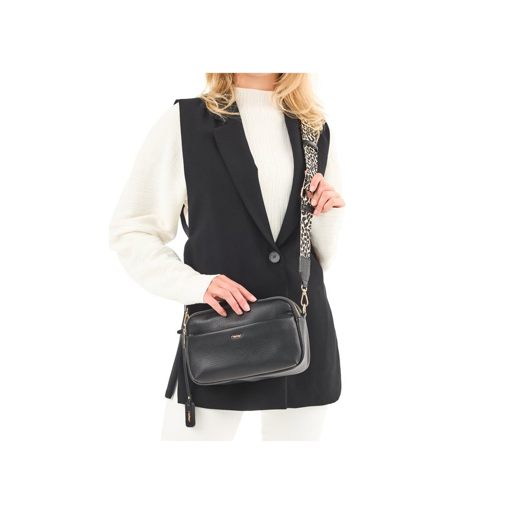 Dámská kabelka s nastavitelným popruhem přes rameno, nebo šikmo přes rameno jako crossbody. Na přední straně kapsa na zip. Kabelka je rozdělena na dvě komory s uzavíráním na zip. Uvnitř kabelky jedna kapsa na zip a dvě otevřené