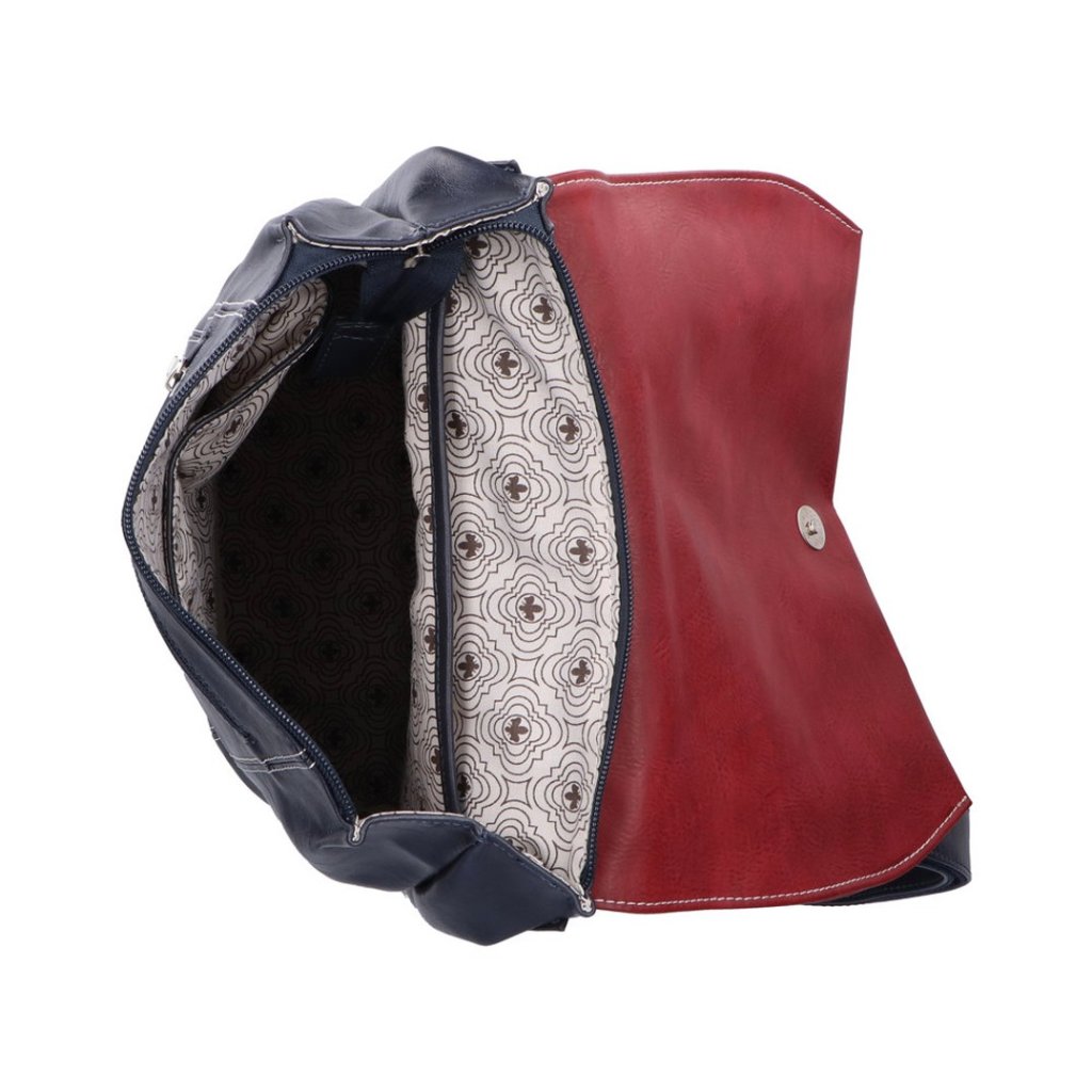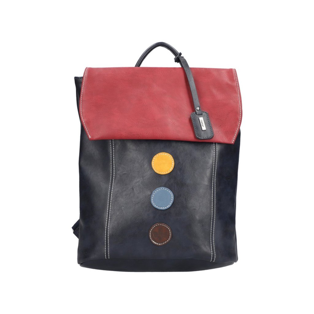 Dámský batoh s jedním uchem do ruky a se dvěma nastavitelnými popruhy přes rameno. Uzavírání batohu je na klopnu s magnetkou a zip. Na zadní straně kapsa na zip. Uvnitř batohu , dvě kapsy otevřené