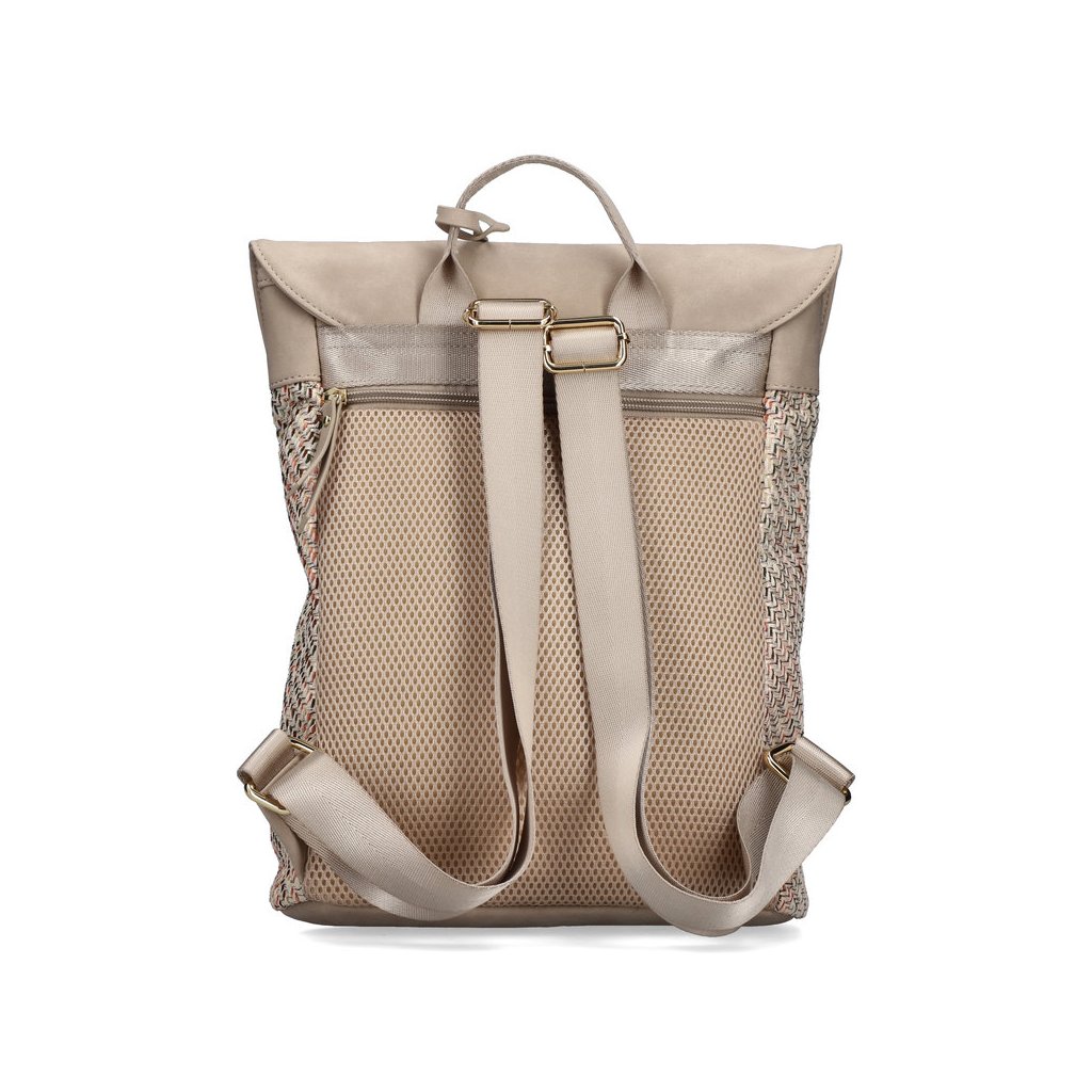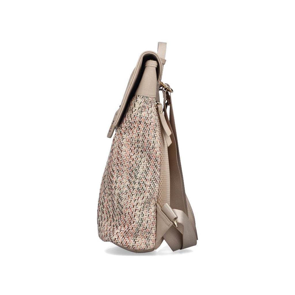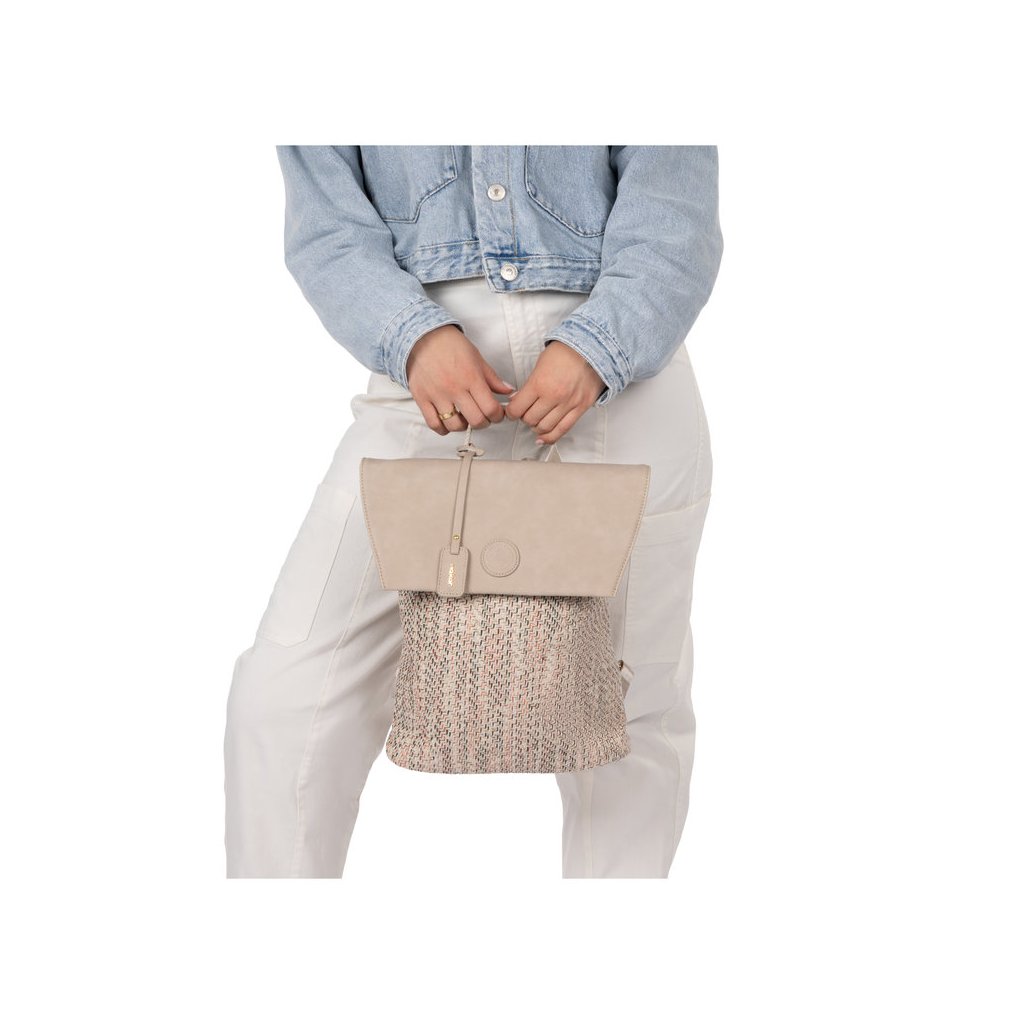 Dámský batoh s jedním uchem do ruky a se dvěma nastavitelnými popruhy přes rameno. Uzavírání batohu je na klopu s magnetickým zapínáním a zip. Na zadní straně kapsa na zip. Uvnitř batohu přepážka, jedna kapsa na zip, dvě menší a dvě větší kapsy.
