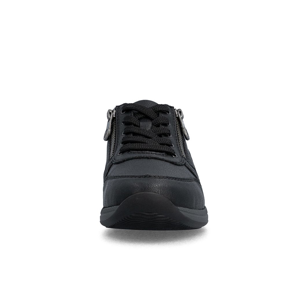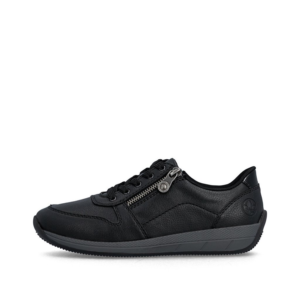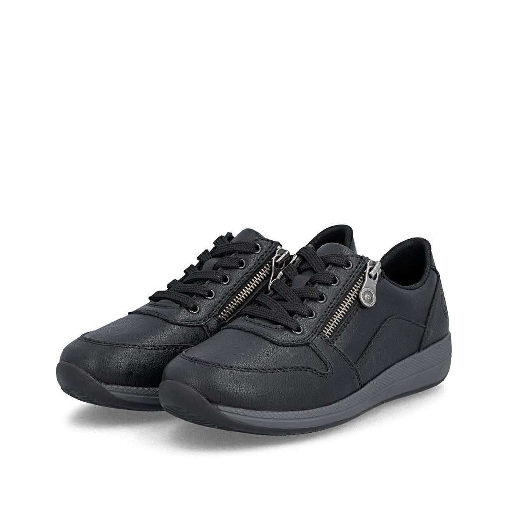 Dámské polobotky Rieker jsou pohodlné dámské polobotky v černé barvě s kombinací šněrování a zipu pro snadné obouvání. Díky technologii Antistress, měkké vyjímatelné stélce a flexibilní podrážce jsou ideální na každodenní nošení i delší chůzi.