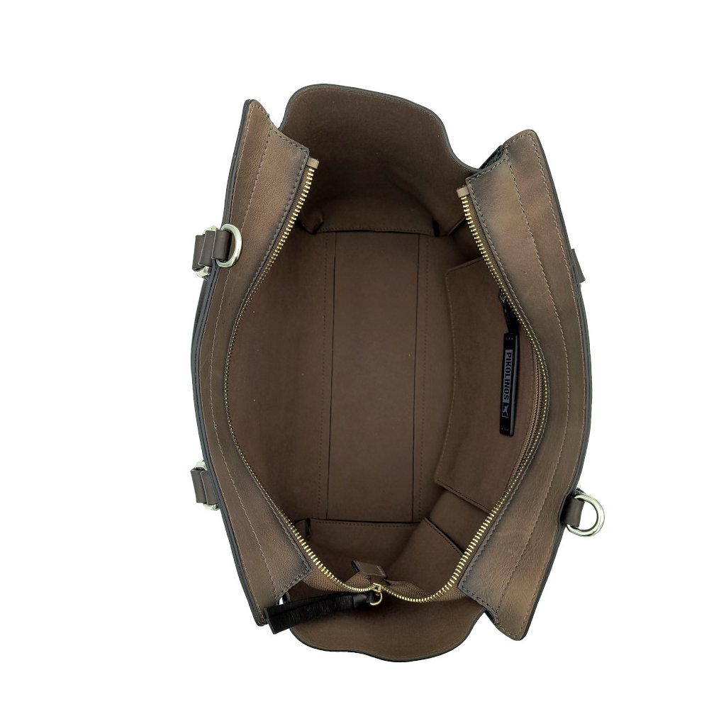 Dámská kožená kabelka Pikolinos má dvě ucha do ruky (výška 15cm) a nastavitelný popruh (105 cm). Uvnitř kabelky jedna kapsa na zip. Kabelka se uzavírá na zip.